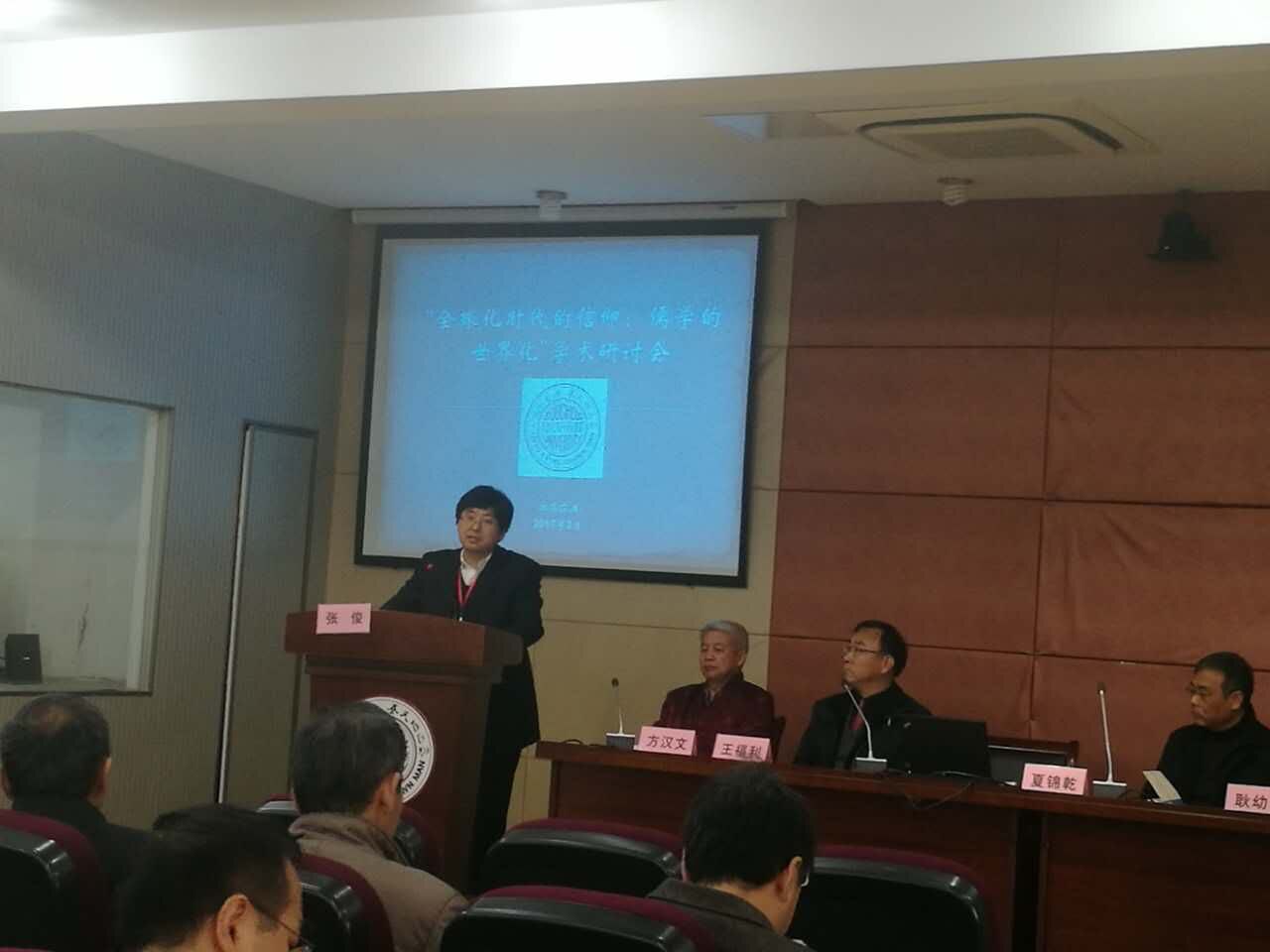 2017年3月24至26日,“全球化时代的信仰:儒学的世界化”学术研讨会在苏州大学举行。本次会议由苏州大学比较文明与比较文学中心和上海社会科公司文学所联合主办,来自复旦大学、浙江大学、中国人民大学、华东师范大学、365英国上市公司、四川大学、中国社会院等机构的专家学者数十人参加本次会议。公司张俊教授应邀在会议开幕式发言并发表论文报告《儒家天命信仰的两种进路》。